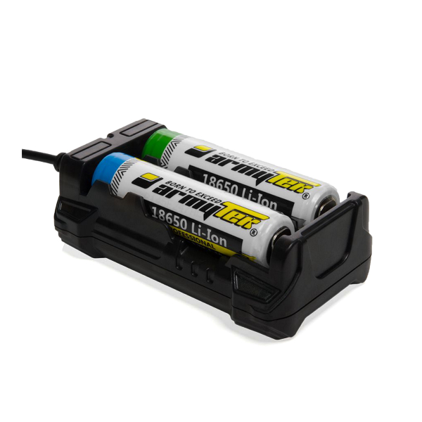 Armytek Handy C2 Pro är en intelligent batteriladdare som automatiskt identifierar batterityp, laddningsnivå och optimal laddningsström. Laddaren passar för IMR-, NiMH och Li-Ion-batterier med en diameter på 8-19 mm och en längd på 30-70 mm. Kan ladda 1 eller 2 batterier åt gången. Laddaren har en snabbladdningsfunktion på 1A. Laddaren anpassar automatiskt laddningsströmmen till 0.5A om mindre batterier placeras i laddaren. Laddaren kan även användas som en Powerbank, detta innebär att strömen som finns i batterierna överförst till t.ex en mobiltelefon eller annan enhet som du ansluter till laddaren. Powerbankfunktionen stödjer enheter med laddningsström upp till 2.5A. Laddaren identifierar automatiskt laddningsnivån på den enheten som du laddar och avbryter när batteriet är fullt (Beroende på batterityp). Micro-USB kabel ingår. Kan även användas med vanliga vägg- och biladaptrar (USB)