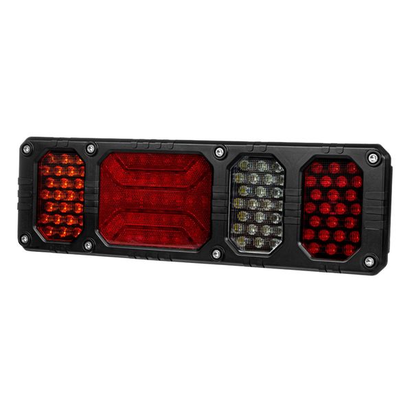 Bakljus designad för tunga fordons behov, som täcker bakljus, bromsljus, backljus, blinkers och dimbakljus med vägtrafikgodkännande. Praktisk modulär design, löstagbara belysningsenheter. Kapslingsklass IP68.