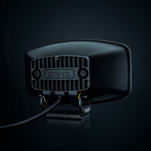 Positionsljuset kan ställas in som antingen orange eller varmvit, ett snyggt alternativ till traditionellt klarvitt sken. Positionsljuset ger ett mjukt men effektfullt sken över hela linsen och belyser även Strands‑loggan i mitten. Linsernas design är inspirerad av äldre glaskonstruktioner, men tillverkade i polykarbonat för maximal hållbarhet. Utöver den karakteristiska linsen utmärker sig lampan även genom sin unika formgivning, som ger både ljuset och fordonet ett stilrent helhetsintryck.