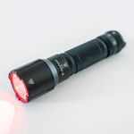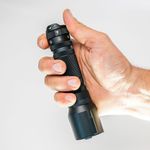 Taktisk ficklampa i behändigt format med vitt, blått och rött ljus för mångsidig användning. Kombinerad ljuskägla lämplig för både närarbete och belysning av föremål på avstånd. Tålig konstruktion som är stöt-, vatten- och dammtät för tillförlitlig drift i alla situationer. Deklarerat ljusflöde 1900 lm, räckvidd 300 m.