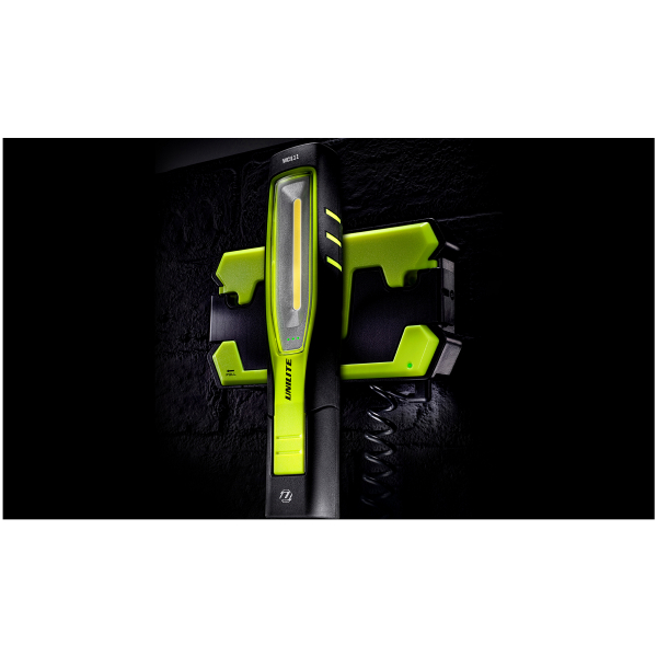 Unilite WCIL11 är en kraftfull inspektionslampa utrustad med en 180° vridbar led. Lampan har två olika ljuskällor, på toppen av lampan sitter en ljuskälla med smal ljusbild som producerar ett behagligt ljusflöde på 220 lumen, perfekt för precisionsarbete eller som ficklampa. Lampans huvudljuskälla har en bred ljusbild med justerbart ljusflöde upp till ett maximalt ljusflöde på 1100 lumen. Den slitstarka konstruktionen är tillverkad i nylon och TPR-material och har en stöttålighetsklass på IK07, de vill säga att lampan tål även den mest krävande arbetsanvändningen. I enlighet med kapslingsklassen IP65 är WCIL11 även helt damm- och vattentät.