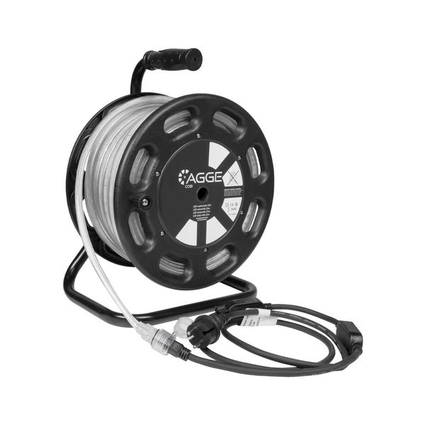 Listens CRI-värde (färgåtergivningsindex) är över 80 och färgtemperaturen är på neutrala 4000 Kelvin. Dessa egenskaper tillsammans med den jämna ljusfördelningen ger en behaglig belysning för ögonen och återger omgivningens färger naturligt. Tack vare det höga CRI-värdet och den neutrala färgtemperaturen kan AGGE COB-listen även användas vid renoveringsprojekt för att ge extra ljus vid exempelvis målningsarbeten, eller för att skapa dagsljusliknande belysning i utrymmen utan fönster. Vid behov kan listen förlängas upp till 100 meter (1200 W), så att belysningen kan anpassas efter behov. Listen har 260 LEDs per meter och ett ljusflöde på upp till 1500 lumen per meter. Ljusets spridningsvinkel är 120°, och listen sprider ljuset jämnt över ett stort område. LED-listen levereras i en bekväm kabelvinda försedd med hjul och ett draghandtag, varifrån den enkelt kan rullas ut och rullas tillbaka för förvaring och transport.