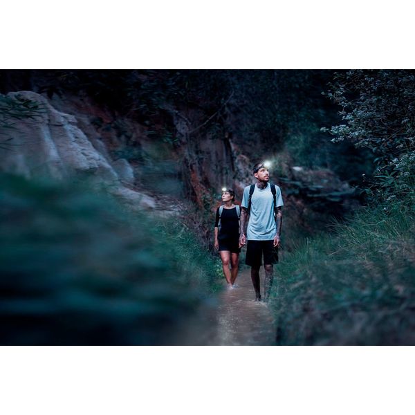 En lätt och uppladdningsbar pannlampa med ett maximalt ljusflöde på 600 lumen och en räckvidd på 140 meter. Utrustad med två ljuskällor för både när och långdistans belysning, vilket gör den idealisk för utomhusaktiviteter och camping. Pannlampan har även rött, grönt och blått ljus. Kapslingsklass IP68.