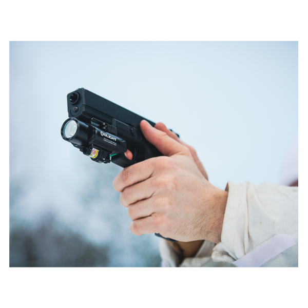 Olight BALDR Pro är en mycket kompakt, effektiv och lättanvänd pistollampa med lasersikte. Baldr Pros fot är utrustad med ett smart snabblås, som gör det enkelt att fästa lampan på en Picatinny-skena, även med en hand! Lampan sitter stadigt även under extrema förhållanden. Monteringen kräver inga verktyg. Med ett enkelt knapptryck ger lampan ett ljusflöde på hela 1350 lumen, antingen med kontinuerligt ljus eller strobe. Passar väl för både yrkes- och hobbyanvändning, samt för både pistoler och vapen med längre pipa.