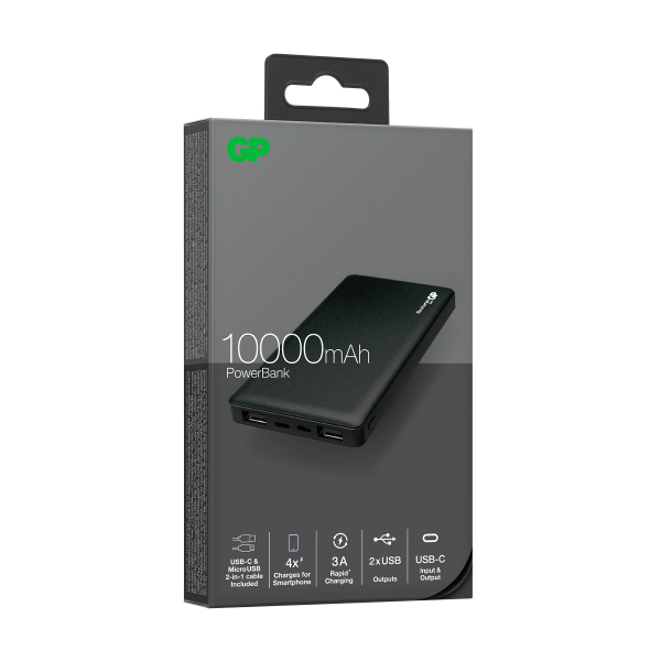 GP Voyage 2.0 är en praktisk och hållbar powerbank som är lätt och smidig att bära med sig. Med ett metallskal och gummiklädda kanter så är den stöttålig och ligger tryggt i handen utan att halka runt. GP Voyage 2.0 kan med sina 3 laddningsportar ladda 3 st enheter samtidigt. Powerbanken har även en genomströmsfunktion som tillåter dig att ladda både powerbanken och dina enheter som är anslutna samtidigt. Powerbanken är utrustad med LED-dioder för att indikera laddningstatus samt eventuellt fel. Vid laddning så blinkar den sista lampan kontinuerligt och när powerbanken är full så lyser samtliga dioder statiskt. Vid eventuellt fel så blinkar den första dioden snabbt för att sedan slockna.