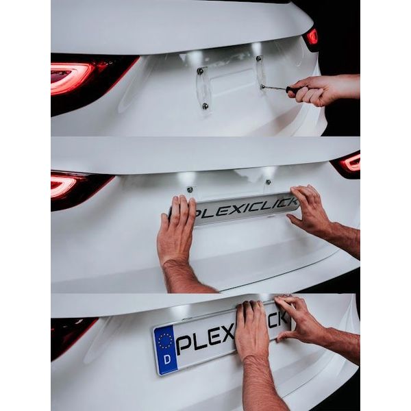 Plexiclick V2 är en innovativ, praktisk och mycket diskret registreringsskylthållare som förenklar av- och påmontering av registreringsskylten. Säljes i 4-pack, och kan användas till att byta ut både främre och bakre registreringsskylthållaren. Fördelen med Plexiclick V2 jämfört med traditionella nummerplåtshållare är att det är betydligt mycket enklare att klicka av och på regskylten, samt att Plexiclicks hållare tar mycket mindre plats än den vanliga hållaren, så det går att komma åt att rengöra bakom regskylten på ett helt annat sätt. Monteringen av Plexiclick V2 är snabb och enkel, och tar endast några minuter. Färgen på skylthållaren är transparent, vilket gör att de är nästintill osynliga. En smart och smidig lösning för dig som vill slippa dina gamla slitna regskylthållare, och få en ny som gör att det går att ta av och sätta på regskylten igen utan minsta ansträngning! Plexiclick V2 passar perfekt till svenska standard-registreringsskyltar, samt till USA-skyltar som har samma höjd.