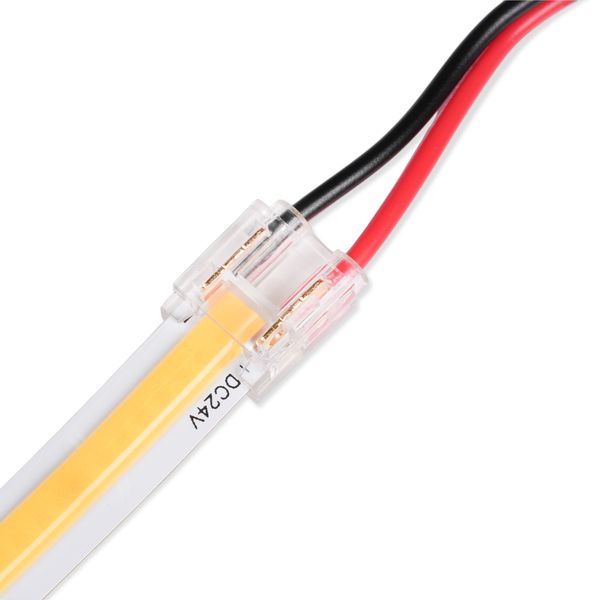 200 cm lång skarvkontakt för smidig förlängning av 12V- och 24V-LED-lister. Gör det möjligt att ansluta LED-listen direkt från dess avslut utan märkbar ljusförlust. Finns för enfärgade 8 och 10 mm lister samt för CCT- och RGB+CCT-lister.