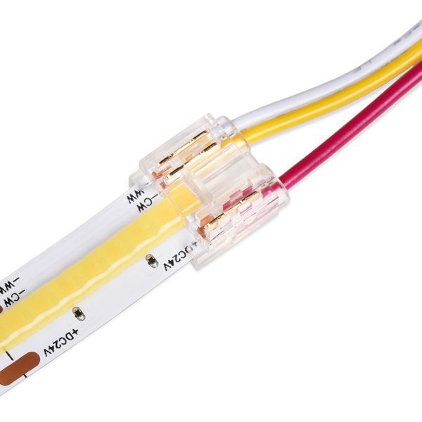 Kabeln finns tillgänglig för vanliga enfärgade LED-lister med 8 mm eller 10 mm bredd, 10 mm breda CCT-lister samt 12 mm breda RGB+CCT-lister. I AGGE:s sortiment är de enfärgade LED-listerna med 15 W/m effekt 10 mm breda, medan listerna med 8 W/m och 10 W/m effekt är 8 mm breda.