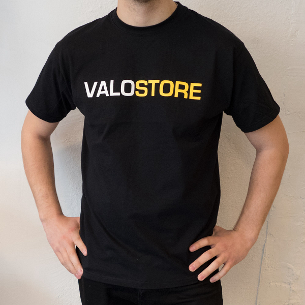 T-shirt med Valostore -tryck. Utmärkt tryckkvalitét. 100% bomull, tål maskintvätt.