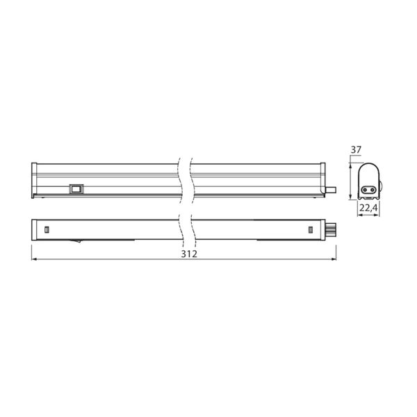 Smal universallampa för torra rum inomhus. Serien innehåller fyra lampor med olika wattal och längder som kan seriekopplas. Angivet ljusflöde 550 lm, färgtemperatur 3000 K.