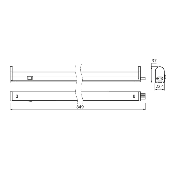 Smal universallampa för torra rum inomhus. Serien innehåller fyra lampor med olika wattal och längder som kan seriekopplas. Angivet ljusflöde 1000 lm, färgtemperatur 3000 K.