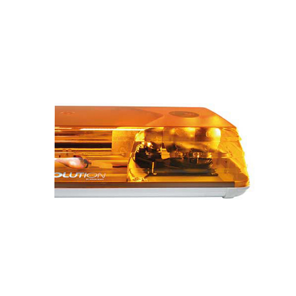 570 mm varningsljus med helt orange kupol (och ljus). Två roterande enheter, H1-lampor. Lämplig för 12 V ström. Mått: 570 x 110 x 215 mm.